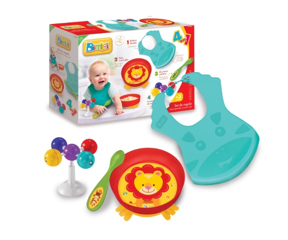 Nueva línea para incentivar a los bebés a que se animen a comer solos. Son 4 sets a precios convenientes combinados con juguetes, ideales para regalar. Set 4en1: Incluye babero, plato, cubierto y sonajero de mesa. El babero es de material flexible y fácil de lavar. El plato es antideslizante y se adhiere a la mesa. Todos los productos son libres de BPA (componente tóxico para los bebés). Medida Packaging: 39x28x14 cm. Edad sugerida: +3 meses