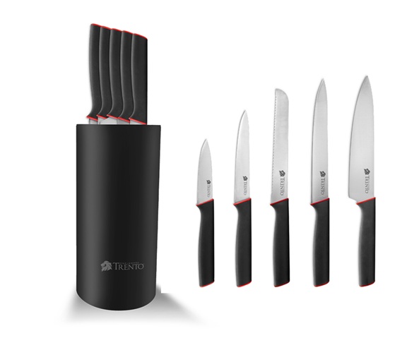 Su acero inoxidable combina facilidad de afilado y retención de filo. Su grip antideslizante asegura un agarre cómodo y balanceado. Su práctico soporte vertical permite ahorrar espacio de mesada. Incluye 6 piezas: cepo, Cuchillo chef (33,3 cm), Cuchillo para rebanar 33,3 cm), Cuchillo para pan (23,8 cm), Cuchillo utilitario (20 cm), Cuchillo de tornear (17,2 cm).