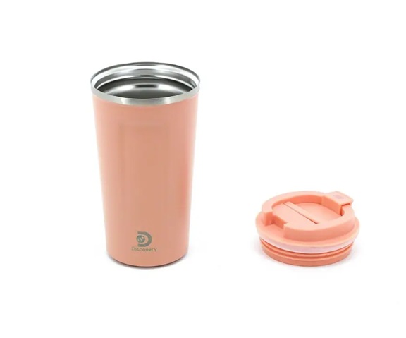 Capacidad: 500ml. Medidas: Alto 17 X circunferencia 7cm.Composicion: Vaso termico de acero inoxidable con capa interna 100% de acero inoxidable AISI 304 y capa externa 100% de acero inoxidable AISI 201. Tapa de 100% de polipropileno con tapon de 100% polipropileno y valvula antiderrame de color blanco 100% de polipropileno, burlete de color transparente 100% de silicona.