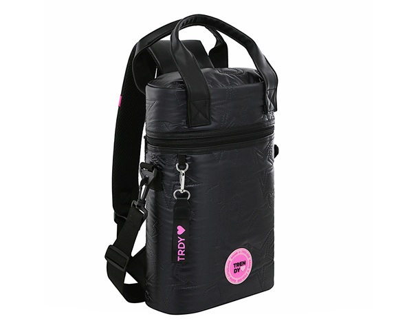 Modelo 18473. Composición: nylon. Correa desmontable. Llavero desmontable. Tiras con tela mesh. Apto para termos de hasta 1,5 litros. Medidas (cm): 37 x 20 x 12.