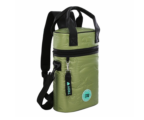 Modelo 18473. Composición: nylon. Correa desmontable. Llavero desmontable. Tiras con tela mesh. Apto para termos de hasta 1,5 litros. Medidas (cm): 37 x 20 x 12.