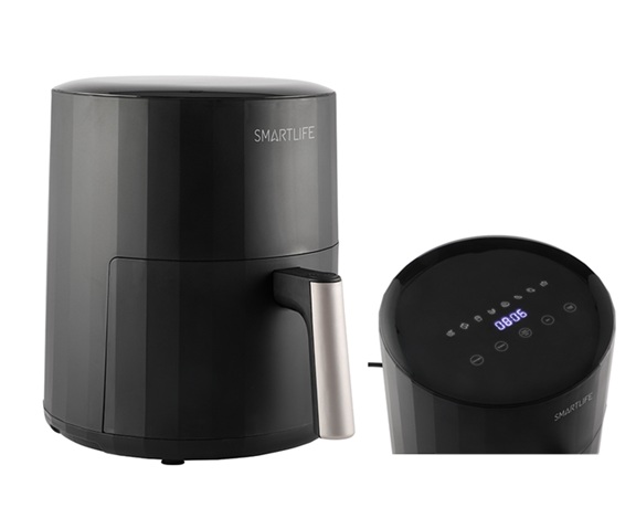 Capacidad total 5L, con bandeja 4.2L. Panel táctil 10 menúes programados + ajuste manual. Temperatura ajustable 40° a 200°C. Alarma sonora indicadora Cesta con cubierta antiadherente. Cesta desmontable apta lavavajillas. Potencia 1350/1550 W. Incluye Bandeja.