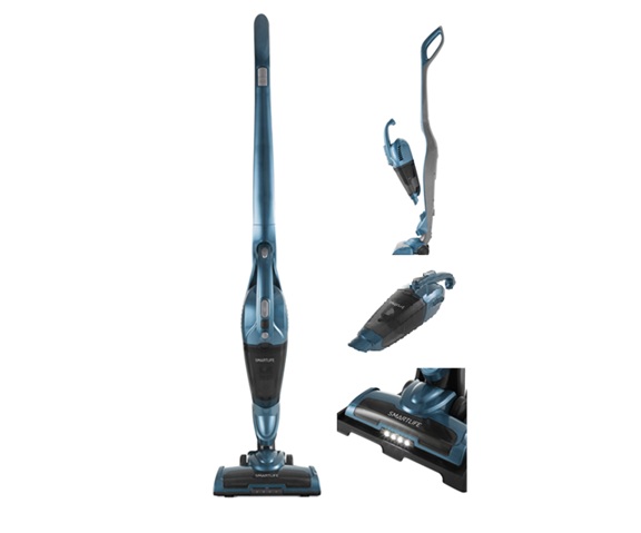Aspiradora Stick 2 en 1. 120 Watts. 800 ml de capacidad. Aspiradora vertical y de mano. Filtro lavable. 2 velocidades. Giro 180°. Autonomía 40 min en baja potencia. Carga completa 4hs - Batería 22V. Luz frontal. Incluye: Base organizadora, cepillo multiuso, boquilla rinconera.