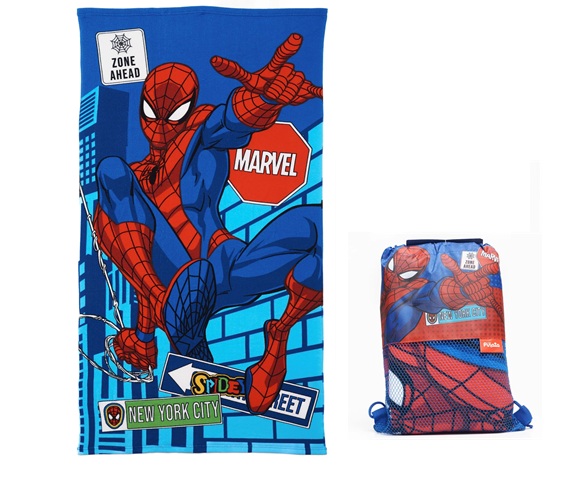 Toallon de Microfibra 70x130 con Bolso Spiderman. Su tamaño y grosor permite un secado perfecto después de una ducha renovadora, pileta o playa. La magia se encuentra en los detalles ya que es muy suave al tacto y cuenta con un bolso súper práctico para poder llevar a todos lados. Composición: 100% Microfibra. Licencia oficial Marvel.